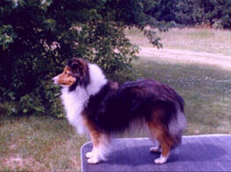 Now, the baby boy, your legacy and Bridgegift is almost eight months old, and growing so much like you every day. His name is Candlochn One Shining Moment O Echo, I call him 'Starphire'. He is definitely a house dog, like you and wants to be touching me all the time. He loves to show, like you did, and I can hardly wait to get him into the ring. He is going to be a big boy, He's almost 16 inches already, I pray that he will not grow any taller.